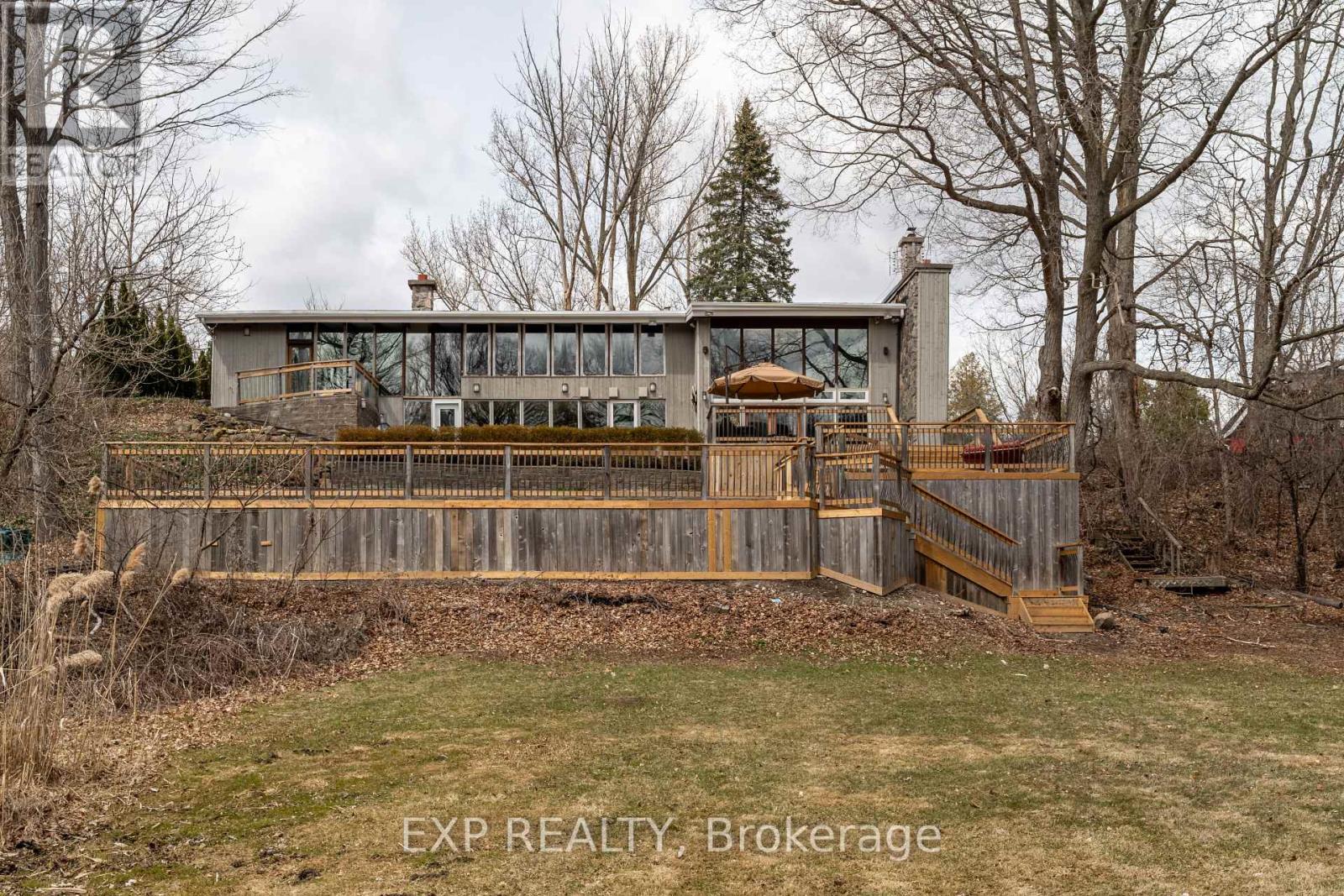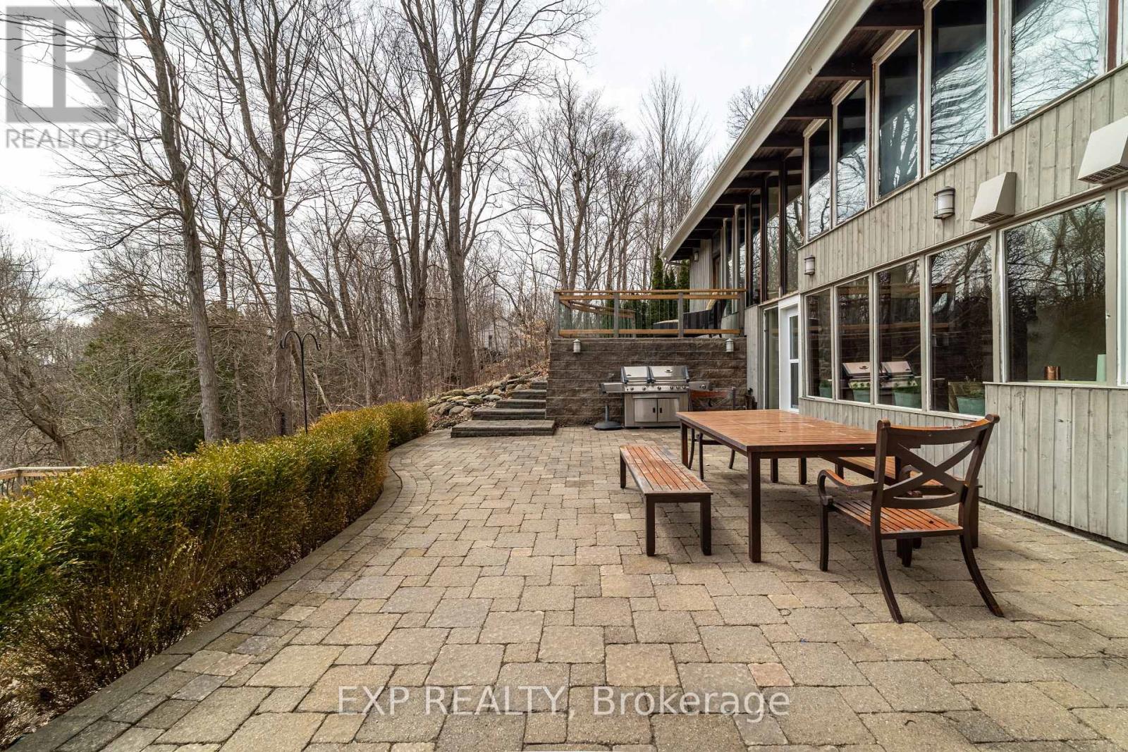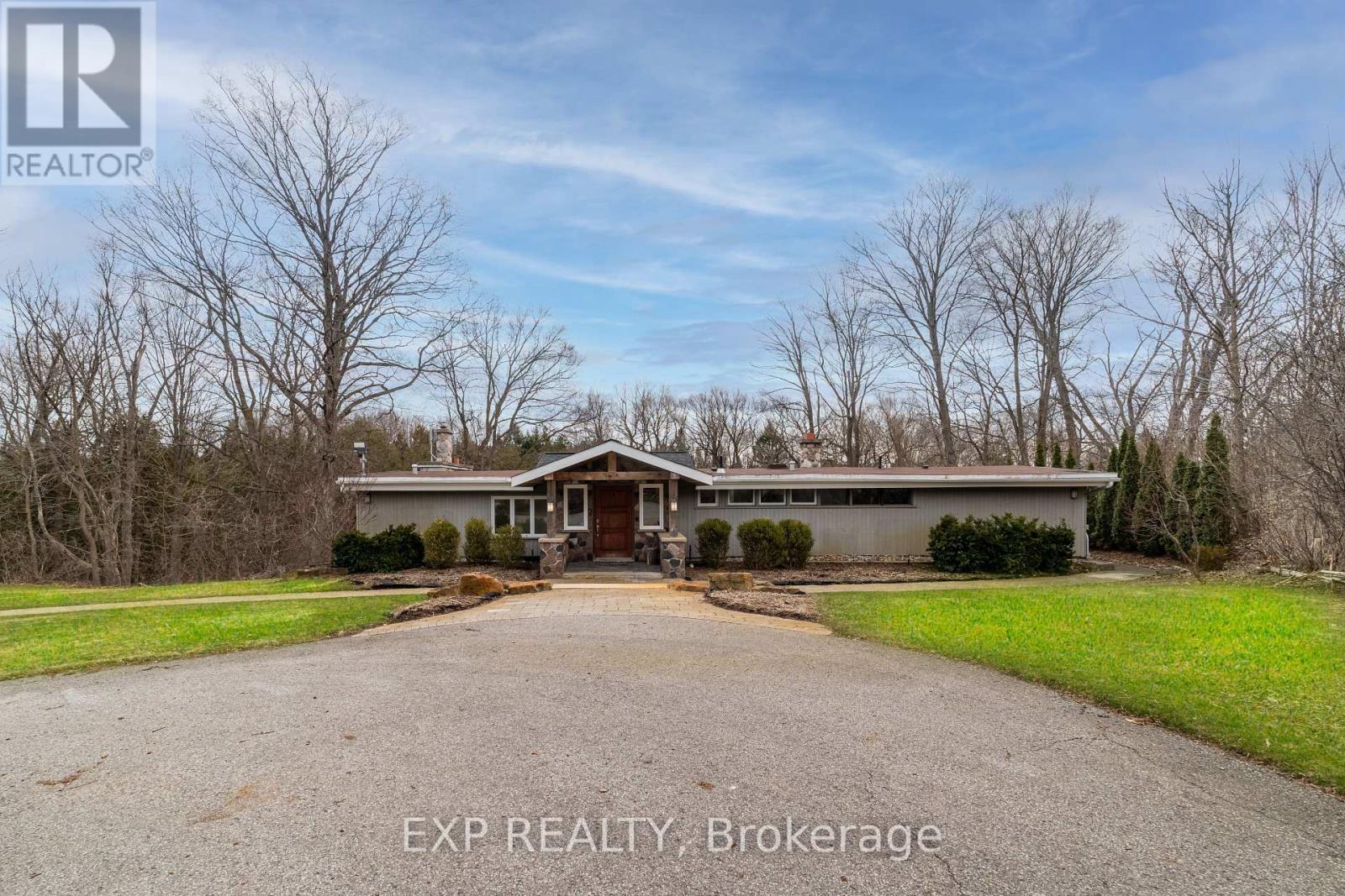 Welcome to 6165 19th Ave., Markham a truly unique country estate offering the best of both worlds: ultimate privacy and serene natural surroundings, all within minutes to modern conveniences. This warm and inviting 4-bedroom, 4-bathroom bungalow inspired by Frank Lloyd Wrights signature style is thoughtfully integrated into the landscape. Floor-to-ceiling windows along the back of the home flood the interior with natural light and provide breathtaking views of the wooded rolling lot and creek. The recently updated kitchen features poured-in-place concrete countertops and rich wood cabinetry. A built-in wall oven and a spacious walk-in pantry make it both beautiful and functional. And the kitchen boasts stunning views of the property including wildlife such as deer, foxes, turkeys, and a great heron. The great room is a showstopper, with soaring 20+ ft ceilings, exposed wooden beams and a natural granite stone wood-burning fireplace perfect for family gatherings or quiet romantic evenings in. The primary suite is a tranquil retreat, complete with a steam feature and jetted soaking tub in the ensuite and a wood burning fireplace. The home is fully wired with CAT-5 making it ideal for modern living. With two wood-burning fireplaces and an additional gas fireplace, warmth and comfort are never far away. Outside, the detached three-car garage with workshop and loft is a dream for hobbyists or those seeking extra space. With utilities already in place, the loft offers untapped potential and can be transformed into a games room, home office, or garden suite. The oversized patio and deck are perfect for entertaining including summer nights around the built-in gas firepit. Natural gas service, a rare feature for a country property, adds value and efficiency. Whether you're seeking a forever family home or a weekend escape, this one-of-a-kind property delivers charm, character, and lifestyle. Dont miss your chance to own this exceptional gem in Markham's countryside. (id:63285)