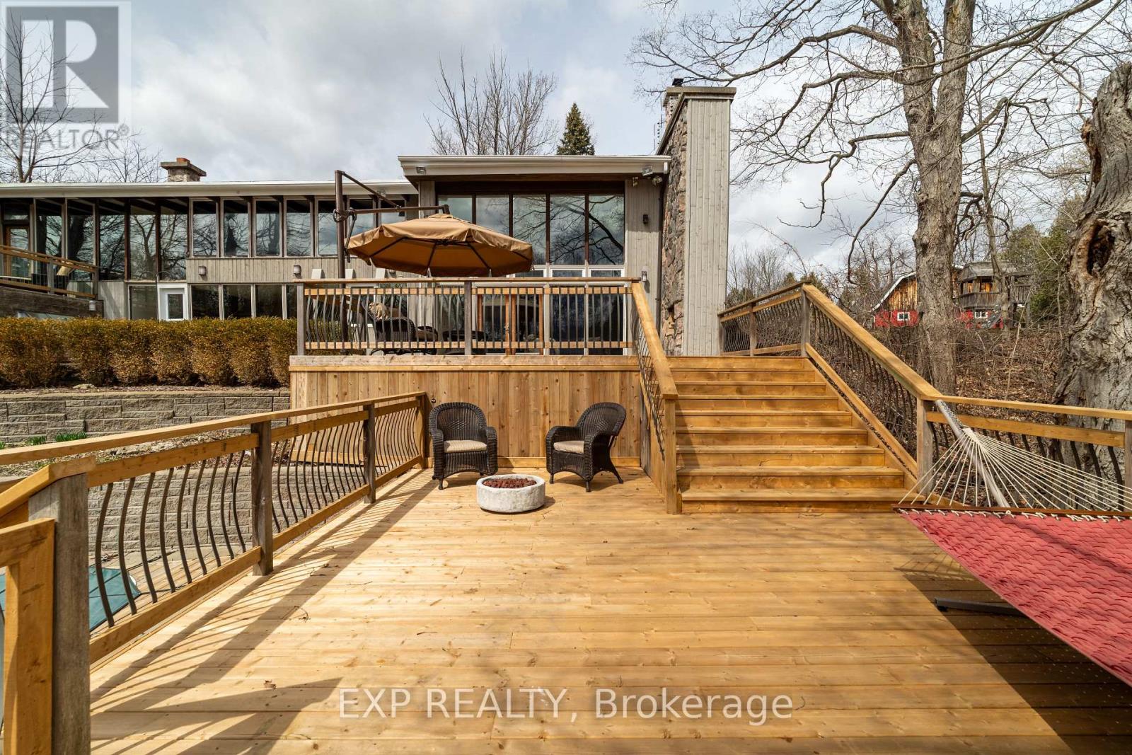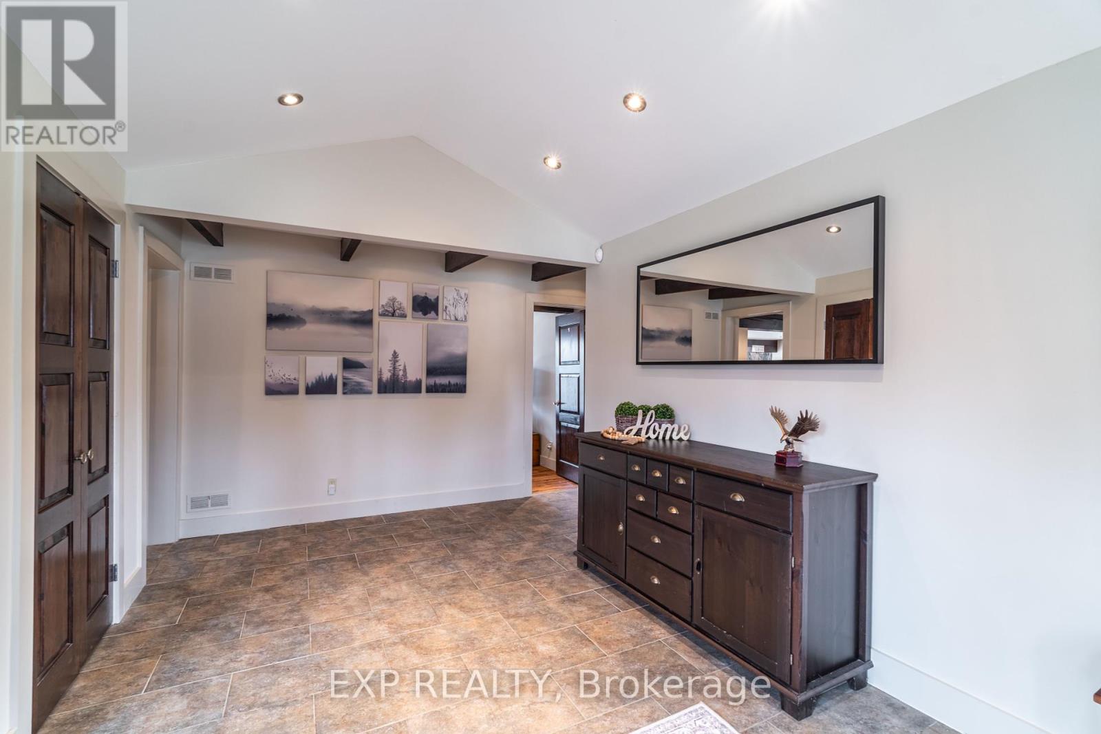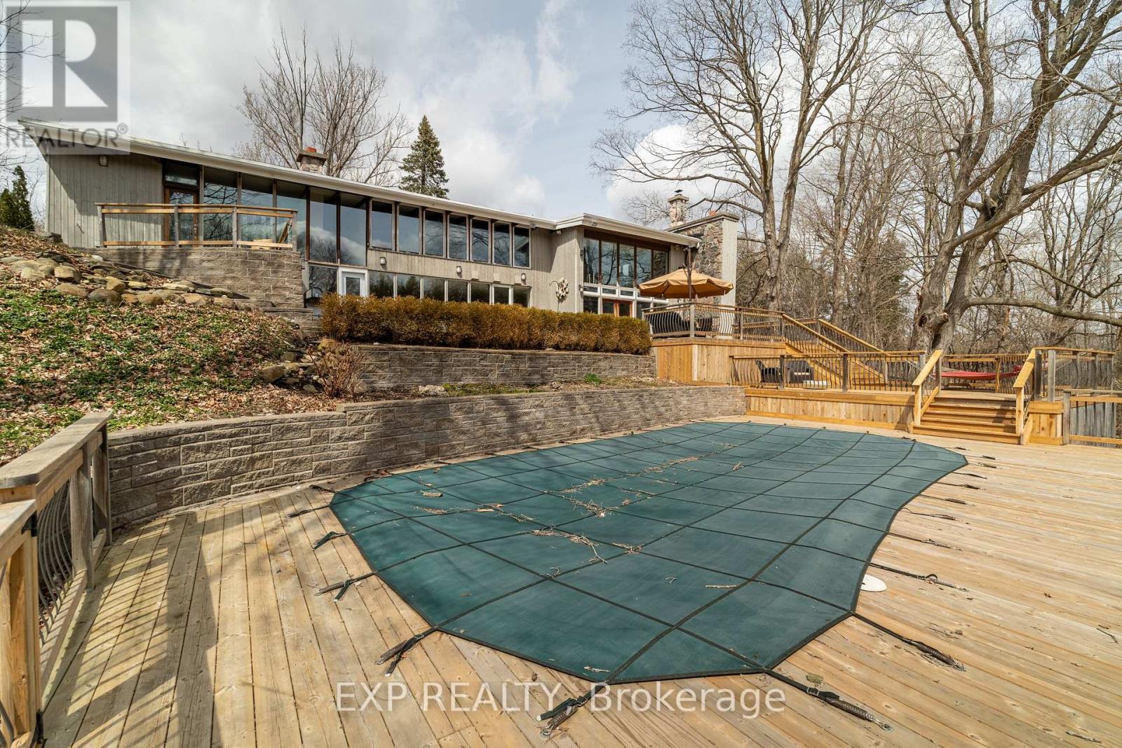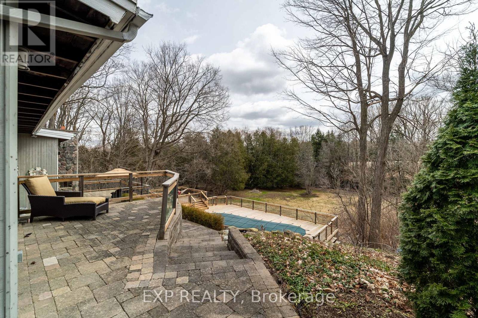 Welcome to 6165 19th Ave., Markham a truly unique country estate offering the best of both worlds: ultimate privacy and serene natural surroundings, all within minutes to modern conveniences. This warm and inviting 4-bedroom, 4-bathroom bungalow inspired by Frank Lloyd Wrights signature style is thoughtfully integrated into the landscape. Floor-to-ceiling windows along the back of the home flood the interior with natural light and provide breathtaking views of the wooded rolling lot and creek. The recently updated kitchen features poured-in-place concrete countertops and rich wood cabinetry. A built-in wall oven and a spacious walk-in pantry make it both beautiful and functional. And the kitchen boasts stunning views of the property including wildlife such as deer, foxes, turkeys, and a great heron. The great room is a showstopper, with soaring 20+ ft ceilings, exposed wooden beams and a natural granite stone wood-burning fireplace perfect for family gatherings or quiet romantic evenings in. The primary suite is a tranquil retreat, complete with a steam feature and jetted soaking tub in the ensuite and a wood burning fireplace. The home is fully wired with CAT-5 making it ideal for modern living. With two wood-burning fireplaces and an additional gas fireplace, warmth and comfort are never far away. Outside, the detached three-car garage with workshop and loft is a dream for hobbyists or those seeking extra space. With utilities already in place, the loft offers untapped potential and can be transformed into a games room, home office, or garden suite. The oversized patio and deck are perfect for entertaining including summer nights around the built-in gas firepit. Natural gas service, a rare feature for a country property, adds value and efficiency. Whether you're seeking a forever family home or a weekend escape, this one-of-a-kind property delivers charm, character, and lifestyle. Dont miss your chance to own this exceptional gem in Markham's countryside. (id:63285)