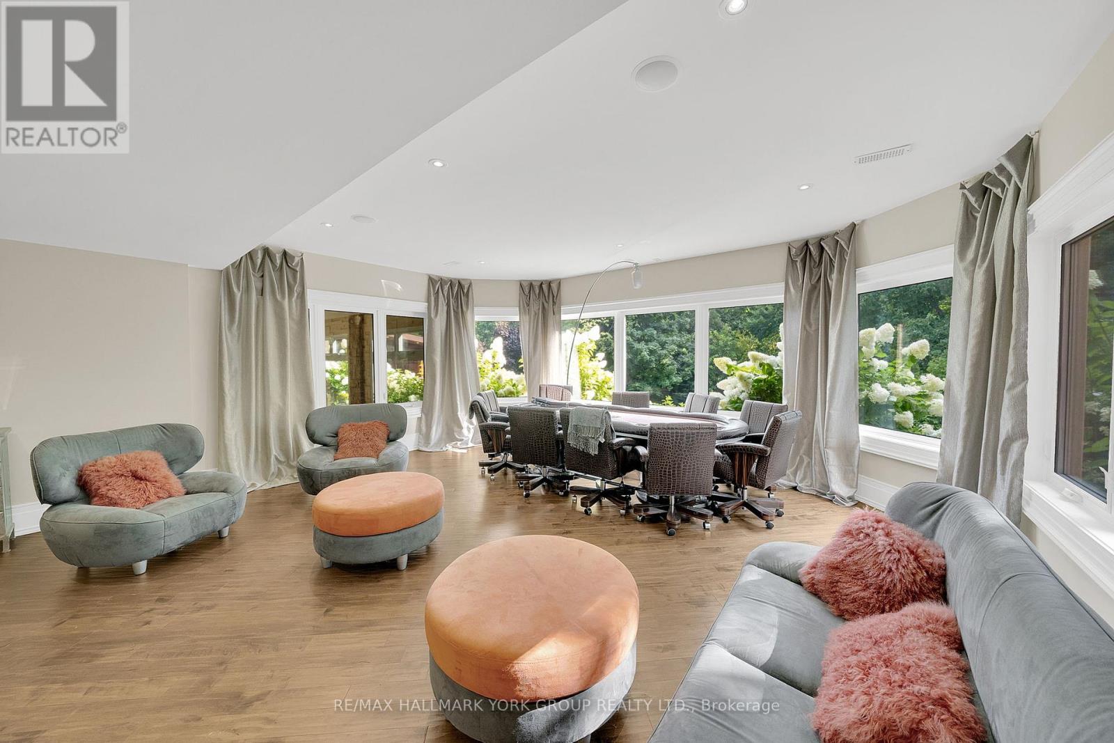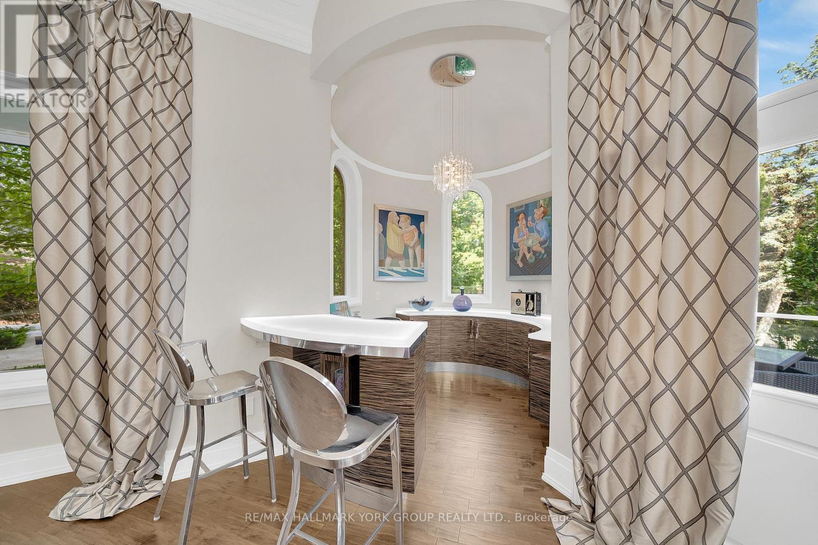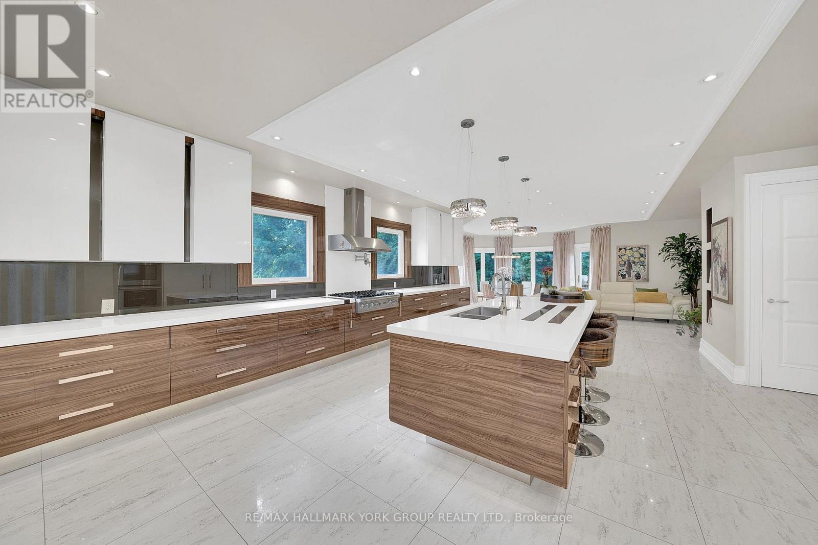 Welcome to Château de Vaughan! This rare opportunity presents a stunning residence nestled on one of the most private lots in the area, featuring a spacious 8400 Sq ft home on 1.8 acres of wooded land on a quiet court. Ideally situated near top-rated schools, parks, restaurants, and shopping, this 6 bedroom 10 bathroom home combines convenience with tranquility. Featuring a remarkable addition and a full renovation, it exudes a clean, modern elegance throughout. Enjoy expansive bedrooms, an open-concept living and dining area with soaring ceilings, and a spacious gourmet kitchen equipped with high-end appliances, perfect for family gatherings and entertaining. The outdoor space is a haven, boasting an inviting infinity pool, a dedicated entertainment area, sports court, golf simulator, multiple waterfalls, and more. A truly magical place for a family to enjoy and make lasting memories! ***EXTRAS*** On Town water And Well for back up- Inclusion: All Electrical Light fixtures, All window coverings, All existing Kitchen Appliances, Washer and Dryer, 3 Electric Panels, 3 Furnaces, 3 A/C, Generator, Inground Pool and all the pool equipment, *** (id:63285)