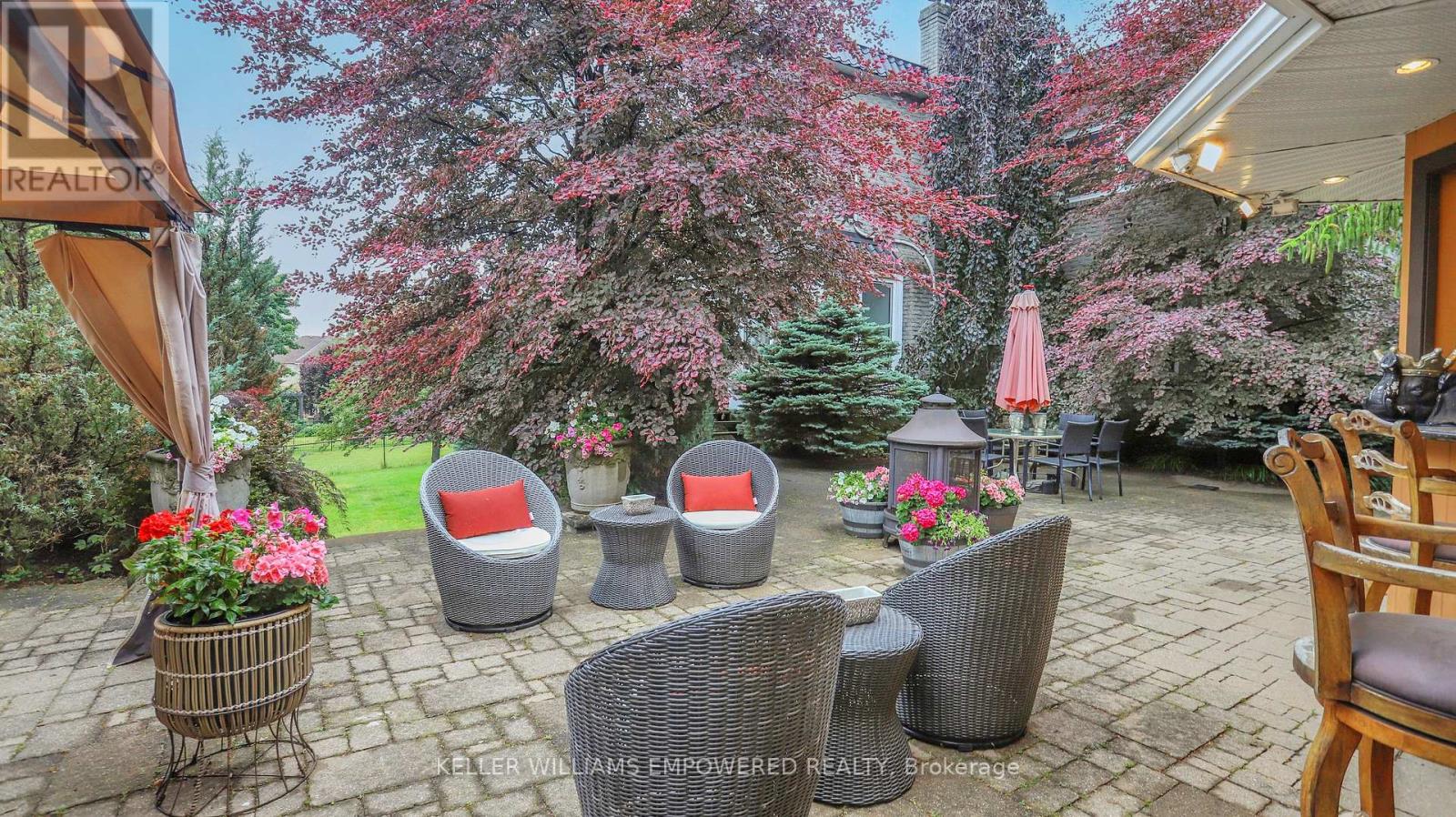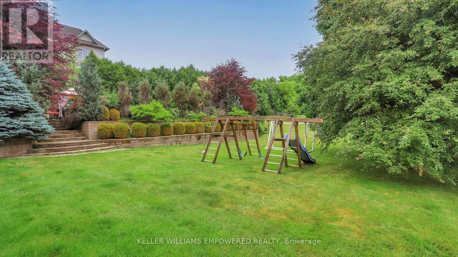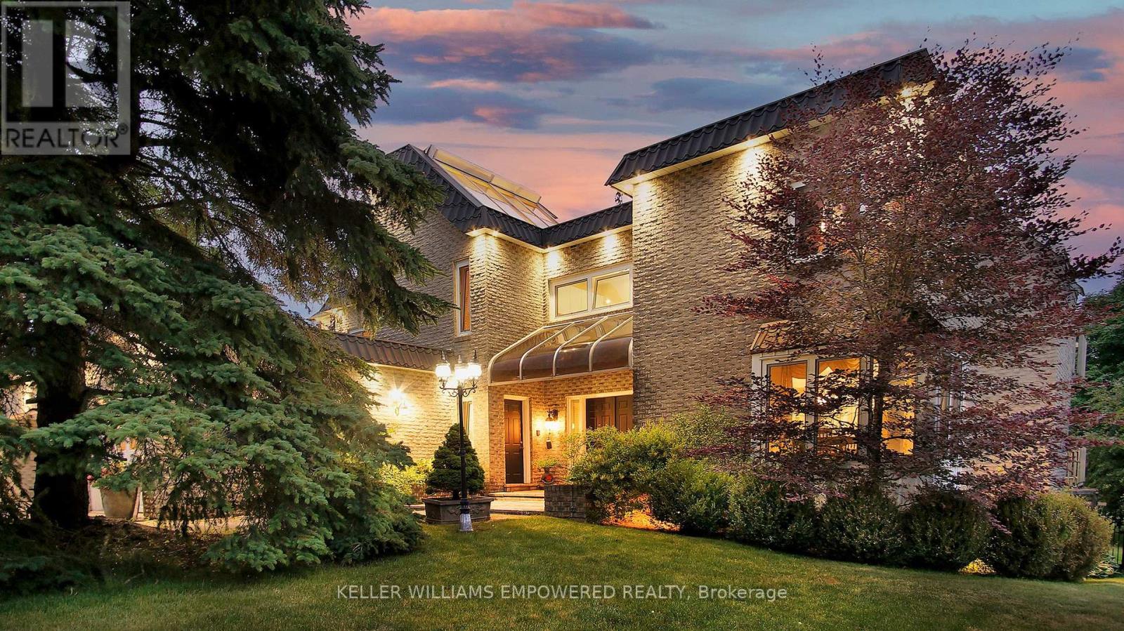 Sitting on a fantastic 1.01 acres in prestigious Woodland Acres, this custom-built estate offers ultimate privacy, luxury finishes, and breathtaking views. This is a one-of-a-kind retreat offering unmatched comfort and natural beauty. The landscaped front grounds feature towering mature trees and lush perennial gardens with abundant privacy. In the rear, a true backyard oasis awaits with an inground pool, large gazebo, swing set, fantastic table space, and a fully equipped cabana with granite countertops, stainless steel fridge, smooth-top stove, two sinks, and a 3-piece bath with separate shower area. Multi-level stone patios, staggered gardens, and expansive lawns make this an entertainers dream. Inside, a grand 2-storey foyer with skylights and marble floors leads to elegant principal rooms, including a family room with a floor-to-ceiling fireplace and balcony walk-out, a living room with medallion ceiling and window bench, and a sunlit family room. The gourmet kitchen boasts Blue Pearl granite floors/counters, Sub-Zero and Miele appliances, a large island, and built-in desk, with a breakfast area that walks out to the rear patio. Upstairs, the primary suite features hardwood floors, a sitting area with balcony access, wood-burning fireplace, and a spa-like ensuite with Jacuzzi, His & Hers vanities, glass shower, and cathedral windows. The second bedroom has its own ensuite with glorious views of the rear grounds. Bedrooms three and four share an architecturally eye-catching bathroom, including a 5-pc marble bath with sloped glass roof. The second-floor laundry room adds convenience. The walk-out lower level offers a rec room with fireplace, steam sauna, 2-pc bath, and plenty of storage. Additional highlights include geothermal heating, European multi-lock windows, three fireplaces, French doors, pot lights, skylights, and multiple balconies. Walk to top-ranked St. Theresa CHS and drive to SAC, SAS, HTS, Lauremont, CDS & Vilanova. (id:63285)