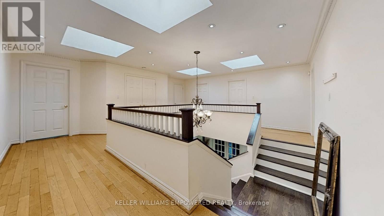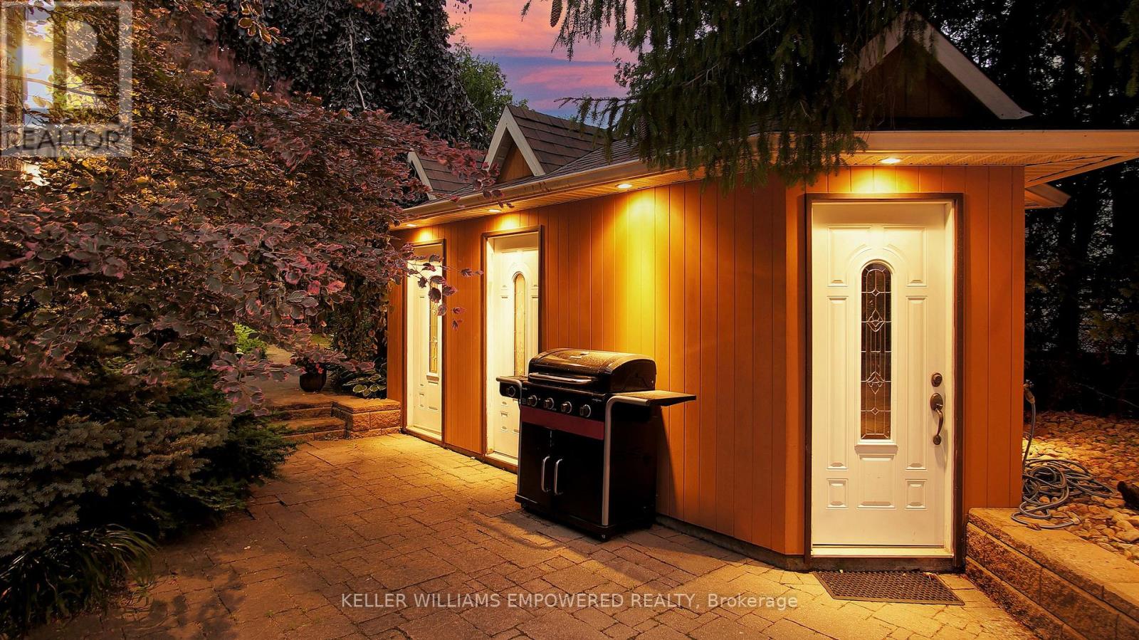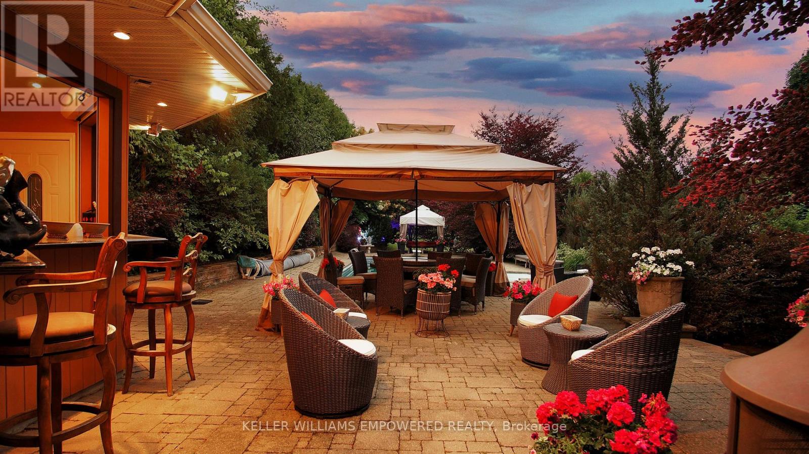 Sitting on a fantastic 1.01 acres in prestigious Woodland Acres, this custom-built estate offers ultimate privacy, luxury finishes, and breathtaking views. This is a one-of-a-kind retreat offering unmatched comfort and natural beauty. The landscaped front grounds feature towering mature trees and lush perennial gardens with abundant privacy. In the rear, a true backyard oasis awaits with an inground pool, large gazebo, swing set, fantastic table space, and a fully equipped cabana with granite countertops, stainless steel fridge, smooth-top stove, two sinks, and a 3-piece bath with separate shower area. Multi-level stone patios, staggered gardens, and expansive lawns make this an entertainers dream. Inside, a grand 2-storey foyer with skylights and marble floors leads to elegant principal rooms, including a family room with a floor-to-ceiling fireplace and balcony walk-out, a living room with medallion ceiling and window bench, and a sunlit family room. The gourmet kitchen boasts Blue Pearl granite floors/counters, Sub-Zero and Miele appliances, a large island, and built-in desk, with a breakfast area that walks out to the rear patio. Upstairs, the primary suite features hardwood floors, a sitting area with balcony access, wood-burning fireplace, and a spa-like ensuite with Jacuzzi, His & Hers vanities, glass shower, and cathedral windows. The second bedroom has its own ensuite with glorious views of the rear grounds. Bedrooms three and four share an architecturally eye-catching bathroom, including a 5-pc marble bath with sloped glass roof. The second-floor laundry room adds convenience. The walk-out lower level offers a rec room with fireplace, steam sauna, 2-pc bath, and plenty of storage. Additional highlights include geothermal heating, European multi-lock windows, three fireplaces, French doors, pot lights, skylights, and multiple balconies. Walk to top-ranked St. Theresa CHS and drive to SAC, SAS, HTS, Lauremont, CDS & Vilanova. (id:63285)