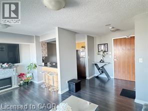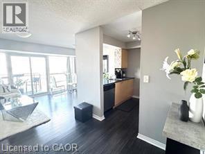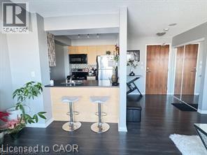 Welcome to Mattamy's 'Rhythm' Building, a cutting-edge, contemporary building only a short distance from Brampton downtown! With a stunning 1 bedroom 1 washroom unit and a surprising amount of open-concept living space, kitchen with breakfast bar into the dining room large living/dining room with large windows and patio door to balcony with great views, 4 piece bath with porcelain tile floor, quartz counter top and soaker tub, large walk in closet in master bedroom, excellent flooring throughout, this unit is in move in condition and immaculate. This urban-style unit is expertly designed in a contemporary style with lots of natural light Building Amenities includes Large Gym, Yoga Room, Party Room, Kindergarten School & Day Care Centre on the Ground Floor of the Building. Conveniently located, just a 3 mins walk to Peel Memorial Hospital. Proximity to the GO Station, transportation, and plenty of services like grocery stores, restaurants, schools, libraries, 24-Hours Shoppers Drug Mart, right outside your door. Being close to Highways 410 and 401 makes traveling and commuting easy. Feel comfortable and secure living in this building because of its round-the-clock security. For first-time buyers or investors seeking a contemporary, conveniently located home with amazing views and all the amenities of city living, this unit is ideal. Room sizes are approx. & irreg. (id:63285)