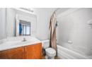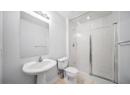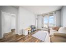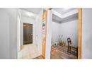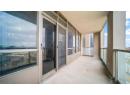Laundry room with estacked washer and dryer and light tile patterned floors