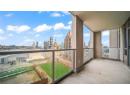 Kitchen with brown cabinetry, black appliances, expansive windows, a textured ceiling, and a peninsula