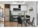Kitchen featuring white cabinets, modern cabinets, open shelves, appliances with stainless steel finishes, and decorative backsplash