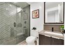 Bedroom with dark wood-style flooring, a closet, and electric panel