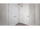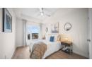 Bedroom with wood finished floors, ceiling fan, and a closet