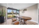 Dining space with a tray ceiling, light wood-style floors, and recessed lighting