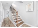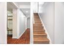 Stairway with baseboards, recessed lighting, and wood finished floors