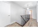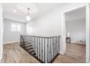 Corridor with wood finished floors, baseboards, and an upstairs landing