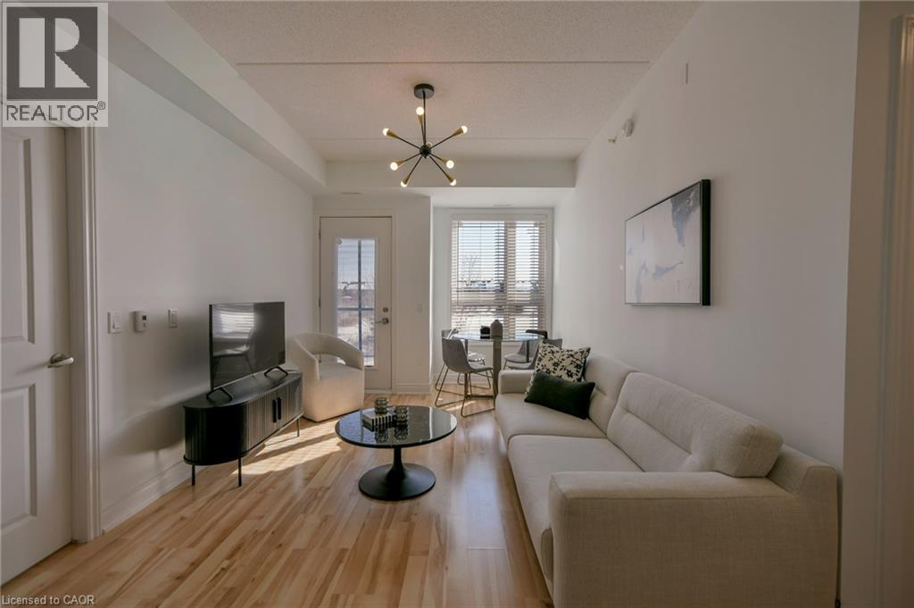 Enjoy upscale living in this beautiful 2-bedroom condo with serene pond views. Offering over 800 sq ft of well-designed living space, this unit features a functional layout with 9-ft ceilings, extended-height kitchen cabinetry, stainless steel appliances, and granite countertops. Large windows flood the space with natural light and showcase sunny southern exposure. Step out onto your private balcony to enjoy your morning coffee while taking in peaceful nature views. Conveniently located just minutes from major highways and steps to schools, parks, and walking trails. Extras include: underground parking close to the entrance, stainless steel fridge, stove, dishwasher, washer and dryer, electric light fixtures,curtains. Garbage room is conveniently located near the unit, and a locker is directly across from the unit. (id:63285)