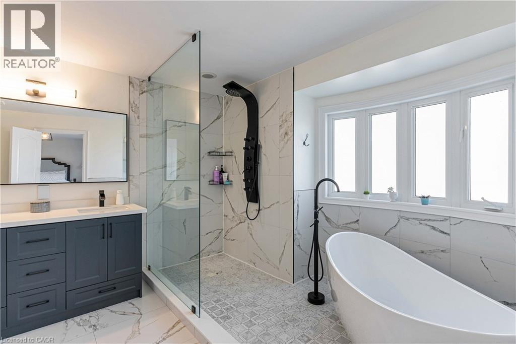 Absolutely stunning, fully renovated home located in the prestigious Vales of Castlemore neighbourhood on a quiet family- friendly court! Professionally upgraded from top to bottom, this exceptional property showcases a designer chef's kitchen at the heart of the home featuring an 8-ft island with wine fridge, quartz countertops and backsplash, built-in stainless steel appliances, pull-out garbage system, coffee station, and elegant designer lighting. The main floor offers a spacious combined living and dining area, a separate family room, and pot lights throughout, with a walk-out to a private deck with gas line-perfect for entertaining. A functional laundry/mudroom provides abundant storage and convenient access to the garage and backyard. Wide plank engineered hardwood floors and oak stairs with wrought iron pickets add warmth and sophistication throughout the home. All bedrooms are generously sized and filled with natural light. The luxurious primary retreat features a spa-inspired 5-piece ensuite with freestanding tub, rainfall shower, and a large walk-in closet with custom organizers. The second bedroom offers its own 4-piece ensuite and closet organizer, while the remaining bedrooms share a convenient Jack & Jill bathroom. The finished basement includes a legal lookout one-bedroom apartment currently rented to an excellent tenant (willing to stay or vacate), offering great income potential. An additional finished recreation room with a 4-piece bathroom provides extra living space for personal use. Beautifully finished exterior with a stone driveway and walkway and parking for up to five vehicles. A true turnkey home-must see! (id:63285)