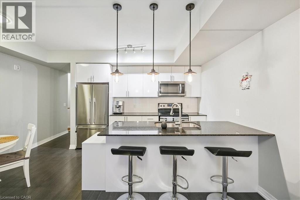 Welcome To This Bright & Beautiful 2 Bedroom, 2.5 Bathroom Stacked Townhome In One Of Milton's Most Desirable Communities! Offering A Perfect Blend Of Modern Design, Comfort & Convenience - Ideal For First-Time Buyers, Downsizers, Or Anyone Seeking A Stylish Low-Maintenance Home. The Open-Concept Layout Features 9' Ceilings, Oversized Windows & Rich Hardwood Flooring Throughout Main Level. The Kitchen Shines With Granite Counters, A Large Island, Extended Cabinetry, Classic Subway Tile Backsplash & Walk-Out To A Private Outdoor Space - Perfect For Morning Coffee Or Evening Relaxation! The Primary Bedroom Boasts A Walk-In Closet & A Modern 3-Pc Ensuite W/ Glass Shower, While The Second Bedroom, 4-Pc Bath, Laundry & Ample Storage Complete The Home. Close To GO Station, Parks, Schools, Shopping, Scenic Escarpment Trails & Major Highways - This One Has It All! (id:63285)