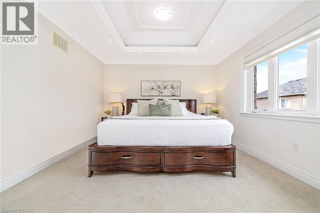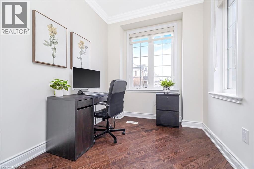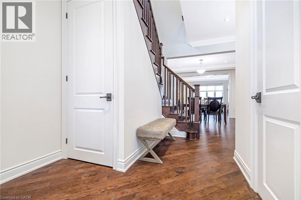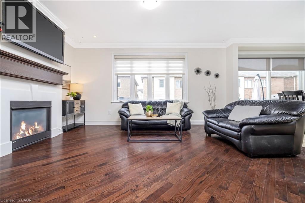 Stunning all-stone and brick 4-bedroom detached FOREVER HOME with almost $150K in UPGRADES situated on a PREMIUM PIE-SHAPED lot with an expansive 75+ FT WIDE BACKYARD. This beautifully upgraded home features a CUSTOMIZED FLOOR PLAN with an open-concept main floor with 9 FT CEILINGS, crown moulding, pot lights, and diagonally cut hardwood flooring throughout. A HOME OFFICE off the front entry and tucked away from the rest of the living space adds convenience and privacy for working from home. The separate dining area overlooks the bright living room with a cozy gas fireplace and views of the backyard. The modern kitchen is designed for both style and function, offering ceiling-height cabinetry, under-cabinet lighting, stainless steel appliances, granite countertops, tile backsplash, cvac crumb catcher, and a MASSIVE CENTRE ISLAND with breakfast bar. Upstairs, a stained oak staircase leads to four spacious bedrooms and CONVENIENT 2ND FLOOR LAUNDRY with built-in cabinetry, window, and floor drain. The primary suite features two closets (including a large walk-in), a dramatic underlit tray ceiling, and a 4-pc ensuite with double sinks, glass shower with bench, and steam shower rough-in. The 5-pc main bath includes double sinks, elegant tilework, and a built-in linen closet. The unfinished basement OVER-SIZED ABOVE-GRADE LOOKOUT WINDOWS, a bathroom rough-in, cold cellar, conduit from basement to attic for future updates, and endless potential. Enjoy the massive, POOL-SIZED BACK YARD with a raised deck, BBQ gas line - never run out!), stairs to a raised aggregate patio, a raised Armour stone vegetable or flower garden, and double gate access. Front and side aggregate walkways provide a clean, low-maintenance exterior. Ideally located on a quiet, child-friendly street close to top-rated schools, parks, shopping, restaurants, and amenities, with easy highway access and nearby conservation areas for year-round outdoor enjoyment. This exceptional family home truly has it all! (id:63285)