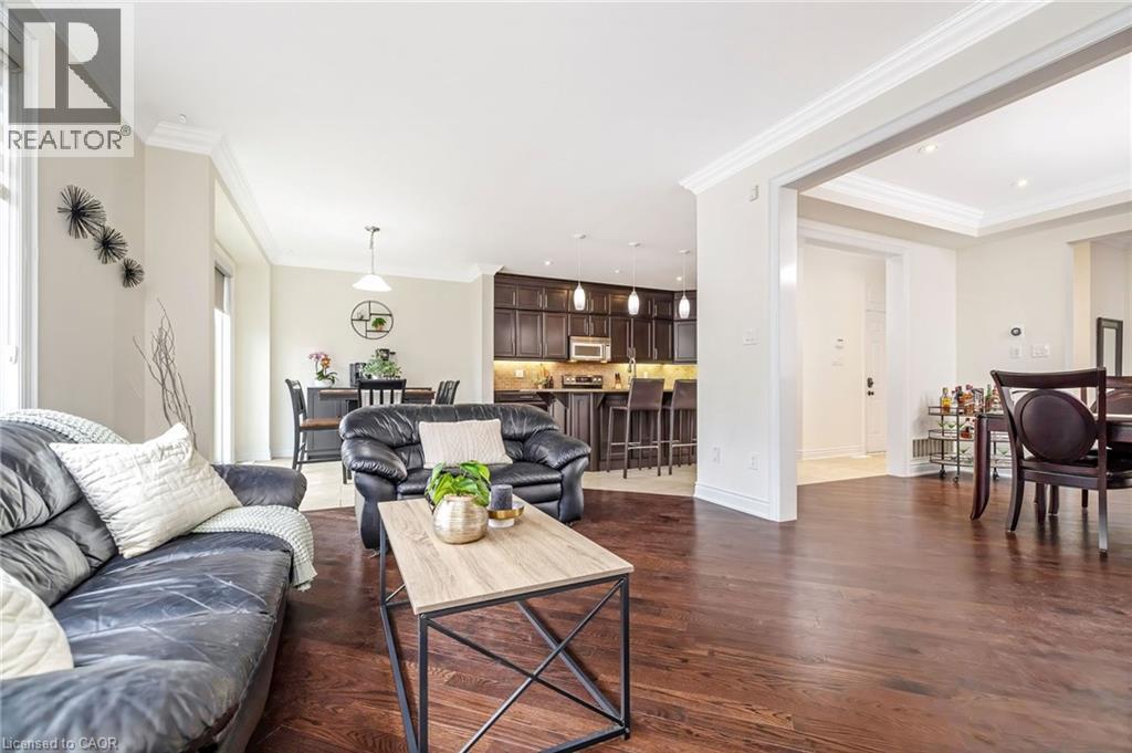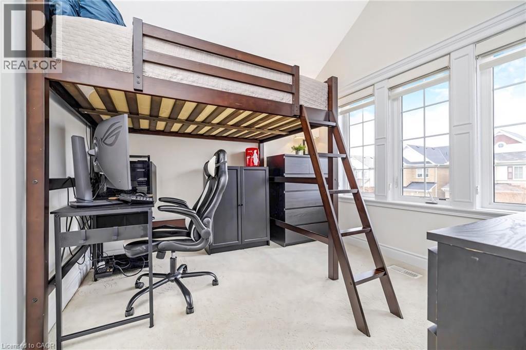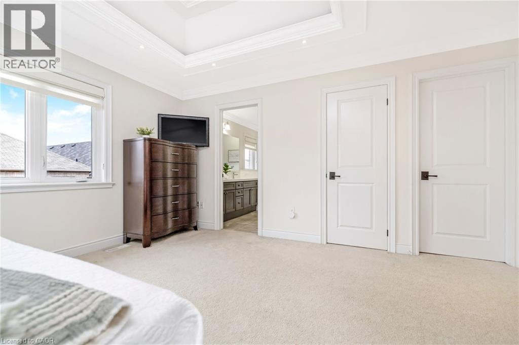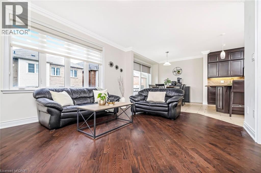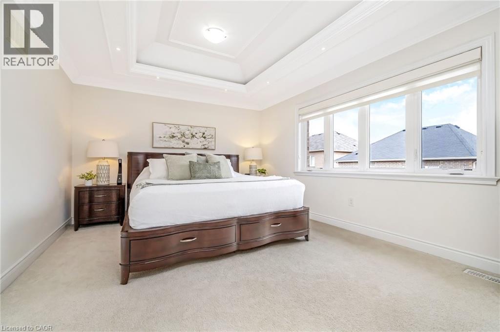 Stunning all-stone and brick 4-bedroom detached FOREVER HOME with almost $150K in UPGRADES situated on a PREMIUM PIE-SHAPED lot with an expansive 75+ FT WIDE BACKYARD. This beautifully upgraded home features a CUSTOMIZED FLOOR PLAN with an open-concept main floor with 9 FT CEILINGS, crown moulding, pot lights, and diagonally cut hardwood flooring throughout. A HOME OFFICE off the front entry and tucked away from the rest of the living space adds convenience and privacy for working from home. The separate dining area overlooks the bright living room with a cozy gas fireplace and views of the backyard. The modern kitchen is designed for both style and function, offering ceiling-height cabinetry, under-cabinet lighting, stainless steel appliances, granite countertops, tile backsplash, cvac crumb catcher, and a MASSIVE CENTRE ISLAND with breakfast bar. Upstairs, a stained oak staircase leads to four spacious bedrooms and CONVENIENT 2ND FLOOR LAUNDRY with built-in cabinetry, window, and floor drain. The primary suite features two closets (including a large walk-in), a dramatic underlit tray ceiling, and a 4-pc ensuite with double sinks, glass shower with bench, and steam shower rough-in. The 5-pc main bath includes double sinks, elegant tilework, and a built-in linen closet. The unfinished basement OVER-SIZED ABOVE-GRADE LOOKOUT WINDOWS, a bathroom rough-in, cold cellar, conduit from basement to attic for future updates, and endless potential. Enjoy the massive, POOL-SIZED BACK YARD with a raised deck, BBQ gas line - never run out!), stairs to a raised aggregate patio, a raised Armour stone vegetable or flower garden, and double gate access. Front and side aggregate walkways provide a clean, low-maintenance exterior. Ideally located on a quiet, child-friendly street close to top-rated schools, parks, shopping, restaurants, and amenities, with easy highway access and nearby conservation areas for year-round outdoor enjoyment. This exceptional family home truly has it all! (id:63285)