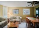Kitchen featuring white appliances, light countertops, a peninsula, and light tile patterned floors