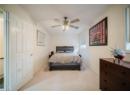 Kitchen with white appliances, light countertops, light tile patterned flooring, and wood finish cabinets