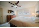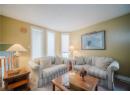 Kitchen featuring light countertops, white appliances, a peninsula, light tile patterned floors, and wood finish cabinetry