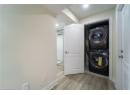 Laundry area with stacked washer / drying machine and light wood finished floors