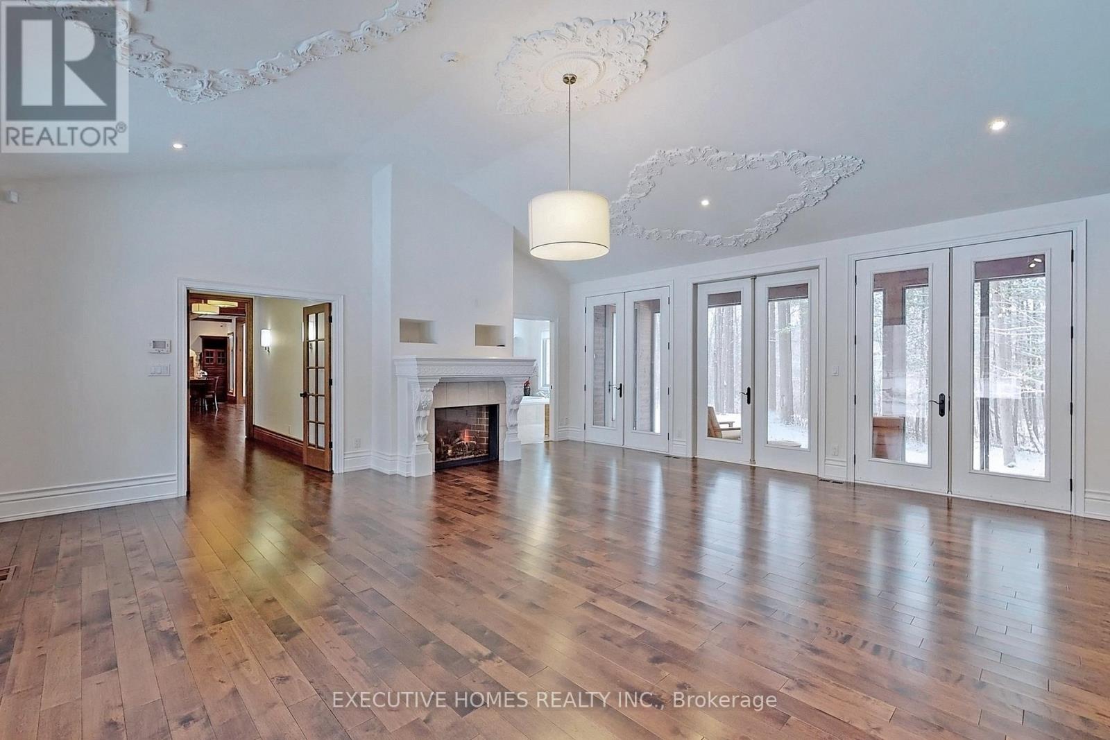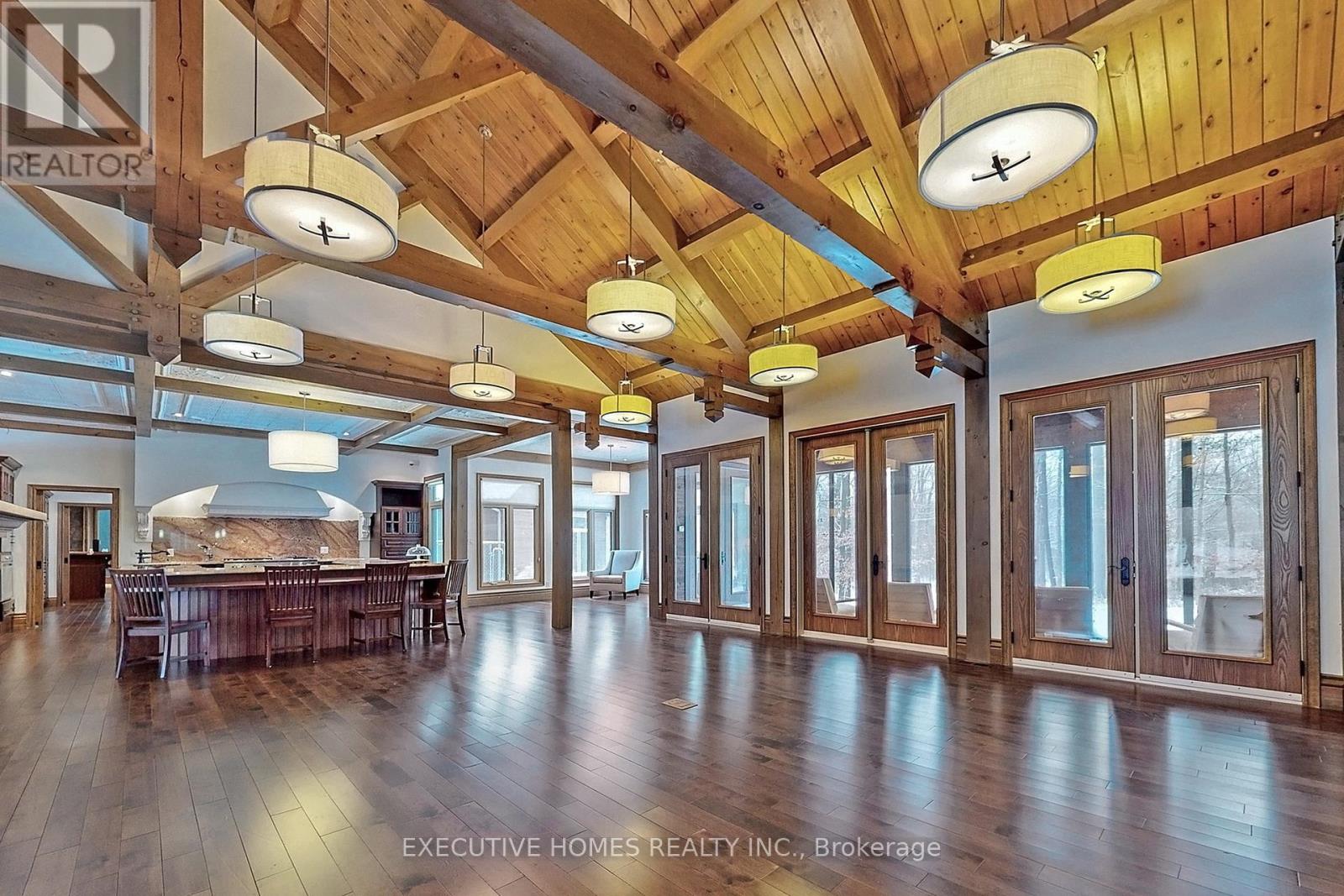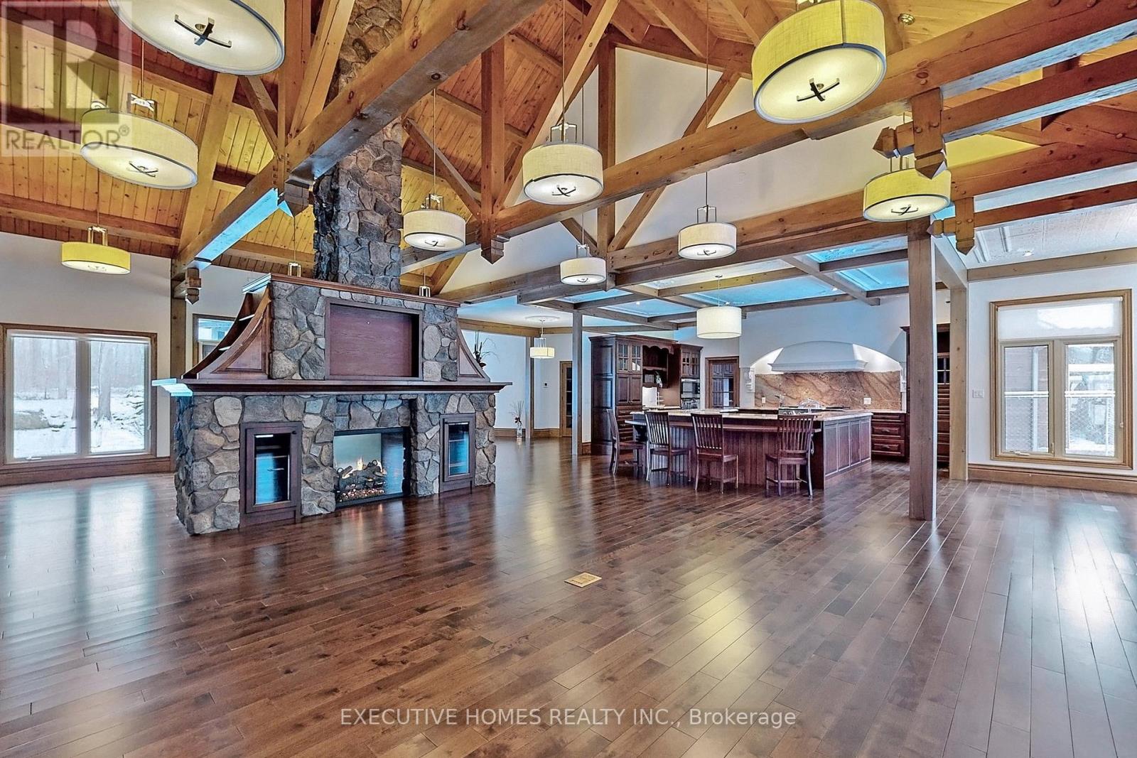Welcome to 7651 Milburough Line, an exceptional private estate set on 42 acres of picturesque countryside in Milton, complete with a spring-fed pond and 30 acres of mature sugar maple forest. A long, tree-lined private drive leads to this remarkable custom-built residence offering approximately 19,470 sq ft of total living space (15,696 sq ft finished). Designed for grand living and entertaining, the home features 11 bedrooms and 11 bathrooms, ideal for multi-generational families or luxury retreats. Inside, timeless elegance is expressed through soaring 22-ft vaulted ceilings, coffered details, handcrafted plaster mouldings, and rich solid wood finishes throughout. Two gourmet kitchens, outfitted with professional-grade appliances, provide exceptional versatility for hosting on any scale. The main floor primary suite is a true sanctuary, highlighted by a spa-inspired ensuite with chromatherapy tub, heated backrests, warming drawer, and heated towel rack. Multiple principal rooms are anchored by five gas fireplaces and a striking wood-burning fireplace, offering warmth and sophistication. Resort-style amenities elevate the experience, including a stunning indoor heated pool with hot tub and children's wading area, along with a dedicated wellness wing featuring a home gym and spa with dual saunas. The finished lower level with walkouts adds flexible space for recreation or extended family living.Outdoors, enjoy multiple patios, screened porches, and a Muskoka-style room with a double-sided fireplace, all surrounded by serene natural beauty. Built with exceptional quality, the home includes geothermal heating, in-floor radiant systems, 400-amp service, metal roofing, and advanced water purification. Renovated in 2015, this rare offering blends luxury, privacy, and convenience just minutes from major routes. (id:63285)